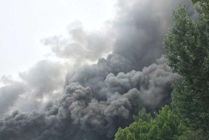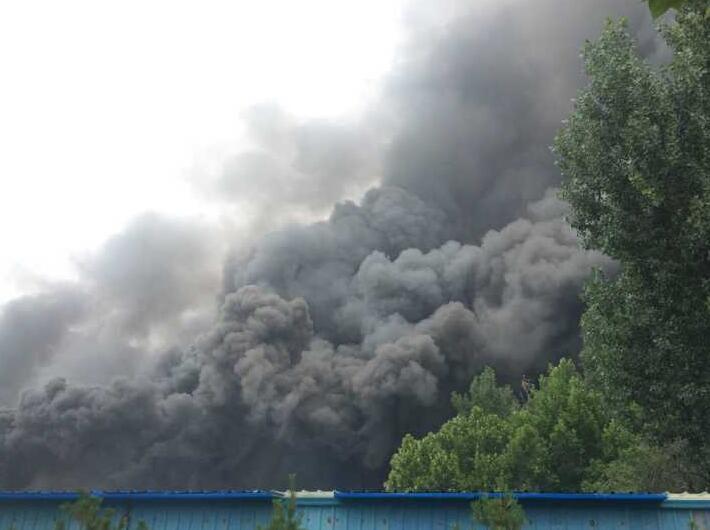 事發(fā)一小時(shí)火勢(shì)仍較為明顯,F(xiàn)場(chǎng)黑煙籠罩,環(huán)境監(jiān)測(cè)等部門也趕到附近監(jiān)測(cè)。距離現(xiàn)場(chǎng)五六十米處,有明顯灼熱感。