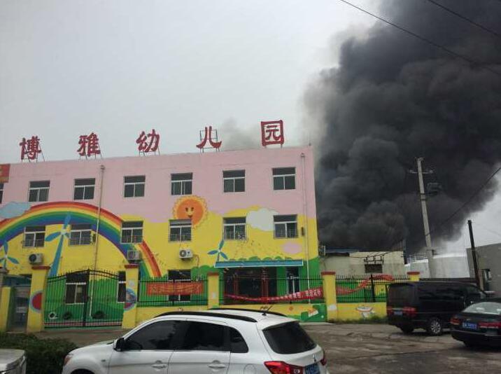 事發(fā)后,緊鄰著火倉(cāng)庫(kù)的一所幼兒園已疏散,不少家長(zhǎng)焦急趕到幼兒園。目前,濟(jì)齊路東向西方向已封閉,10余輛消防車趕到現(xiàn)場(chǎng)救援。