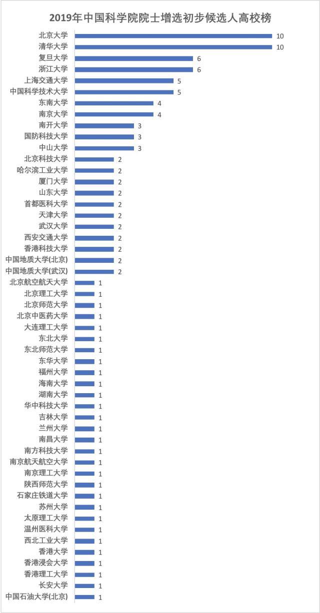 高校中,北京大學(xué)和清華大學(xué)各有10人,并列第一;復(fù)旦大學(xué)和浙江大學(xué)各有6人,并列第三;上海交通大學(xué)和中國科學(xué)技術(shù)大學(xué)各有5人,并列第五。東南大學(xué)和南京大學(xué)各有4人,國防科技大學(xué)、南開大學(xué)及中山大學(xué)各有3人。