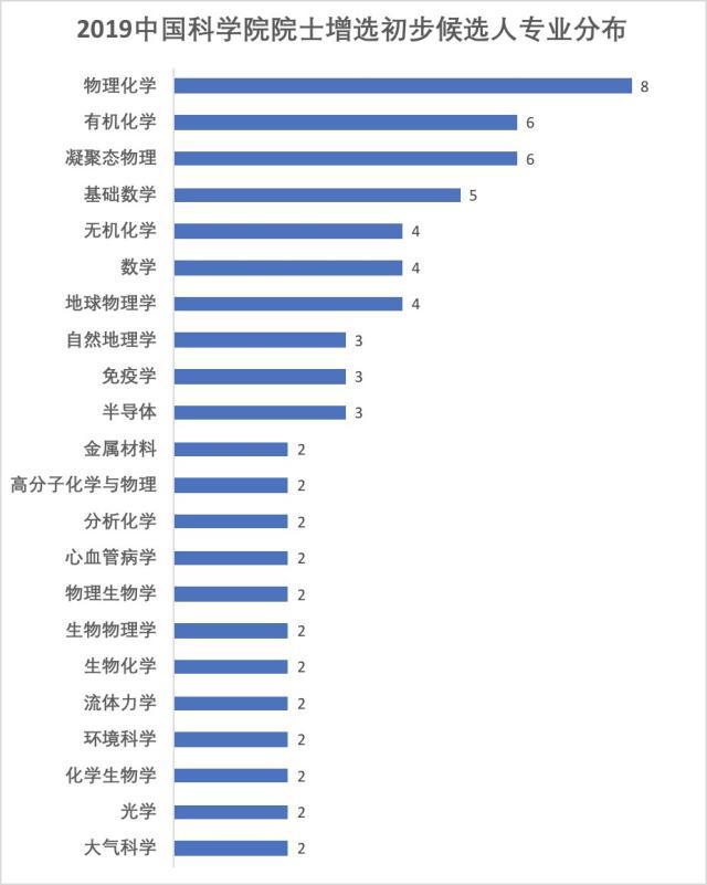 2019年8月1日,中國科學(xué)院正式公布中國科學(xué)院院士增選初步候選人名單,總計181位。其中,自數(shù)學(xué)物理學(xué)部29人,化學(xué)部28人,生命科學(xué)和醫(yī)學(xué)學(xué)部32人,地學(xué)部27人,信息技術(shù)科學(xué)部26人,技術(shù)科學(xué)部39人。