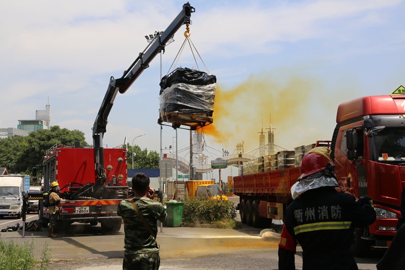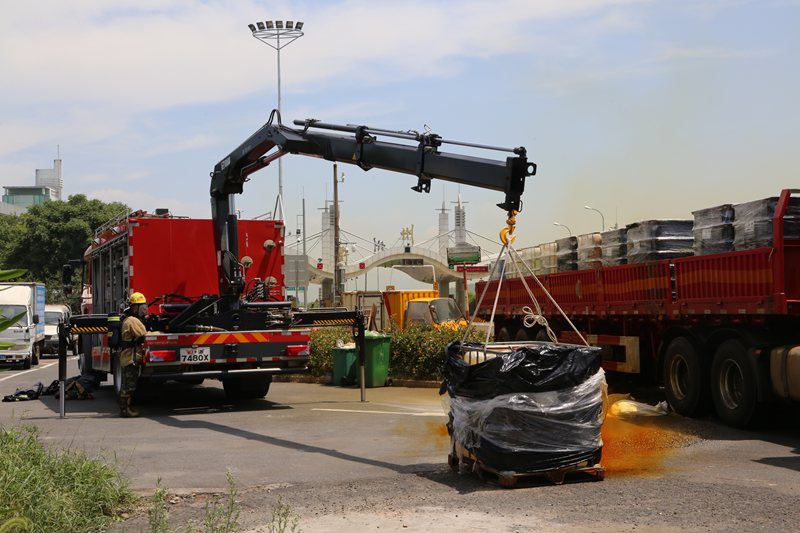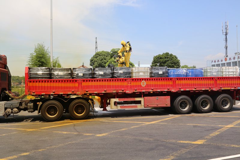 消防戰(zhàn)士穿上防化服,將泄漏的容器連上吊臂吊下,撒上生石灰對(duì)硝酸進(jìn)行中和,通過一系列措施,泄漏物得到及時(shí)清理和妥善處置,事故車輛所載的硝酸,未對(duì)周邊環(huán)境造成的大面積污染和破壞。